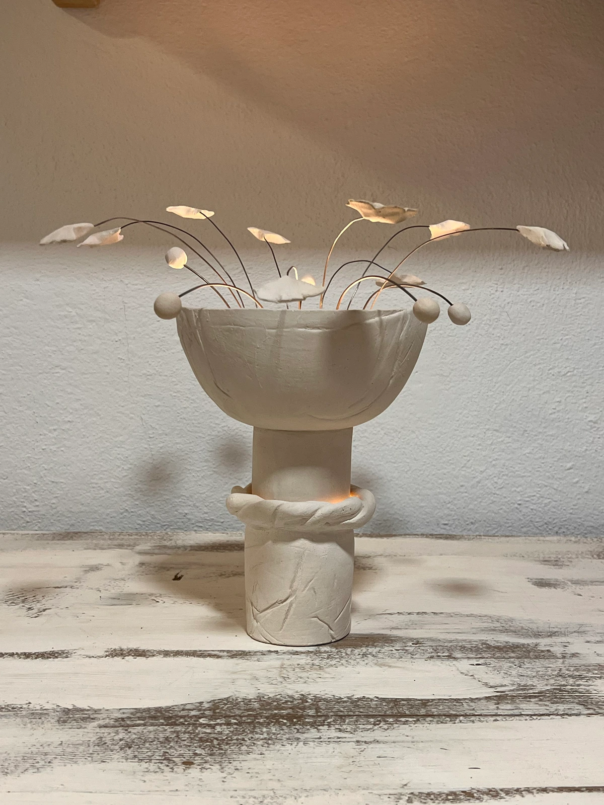 Una pieza híbrida que se trasforma de escultura a lámpara y luego a
